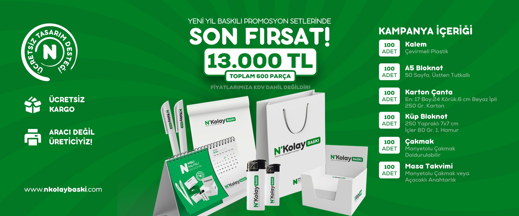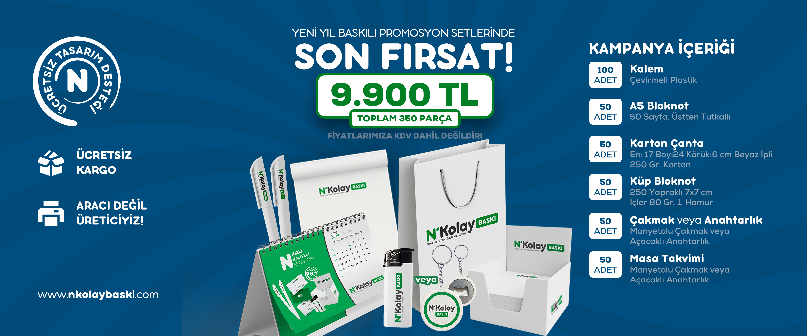 N’Kolay Baskı, markaların kurumsal kimliğini güçlendirmek, tanıtım süreçlerini kolaylaştırmak ve işletmelerin profesyonel görünümünü desteklemek amacıyla kurulmuş bir promosyon ve baskı çözümleri markasıdır.